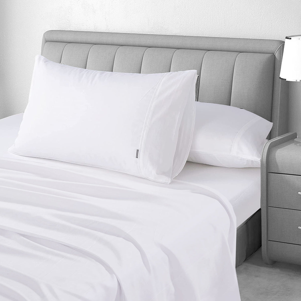 • 3-PIECE BED SHEET SET: 1 Fitted Sheet , 1 Flat Sheet and 1 Pillowcases. Fully fitted design with all-around elastic. Its 40cm deep pocket can fit a mattress up to 40cm deep.