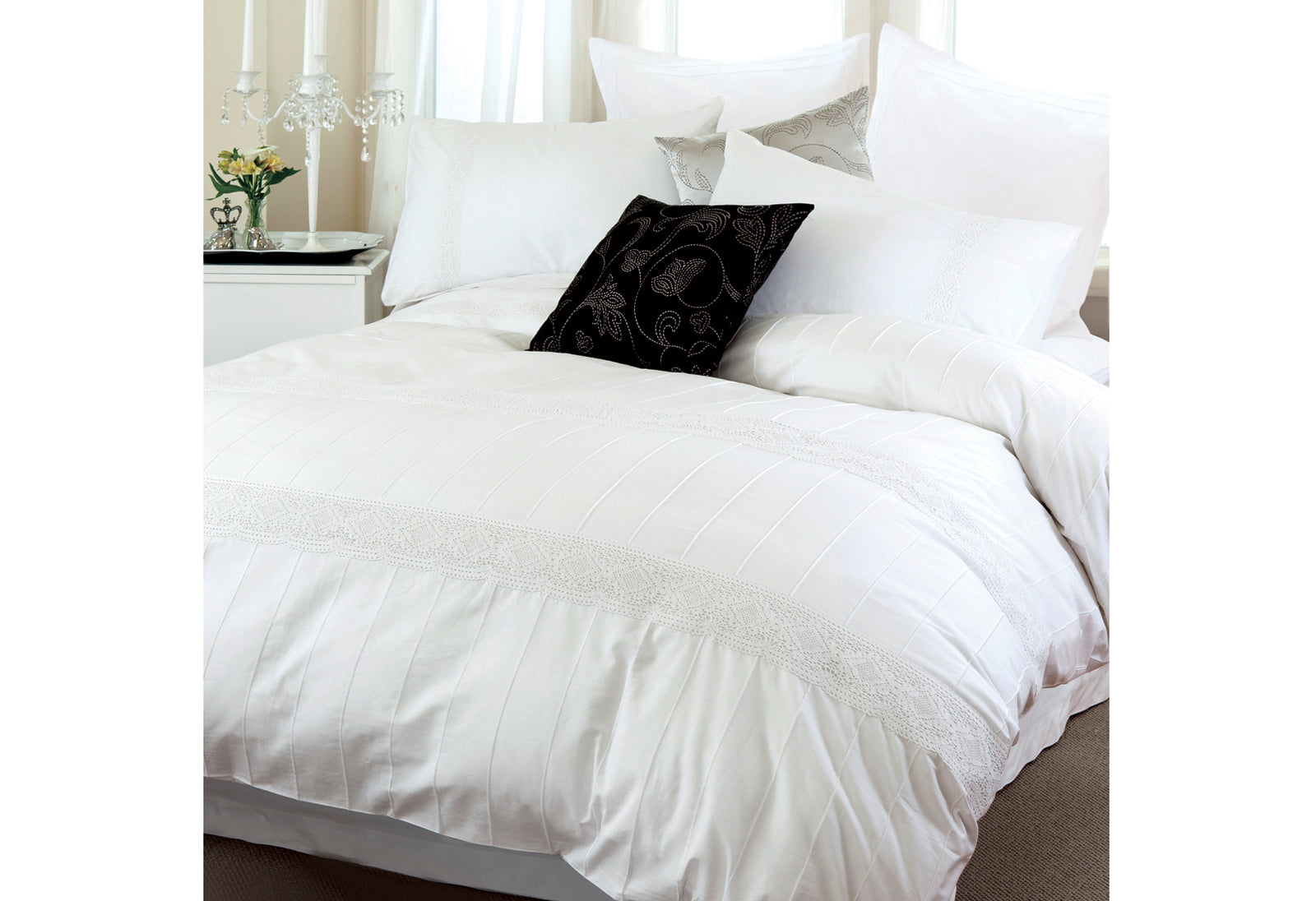 The Einey Quilt Cover Set Hollow out lace design quilt cover set in white color provides such an elegant feel to your room. This Duvet/Quilt Cover Bed made of ultra soft microfiber available in queen size with optional accessories.