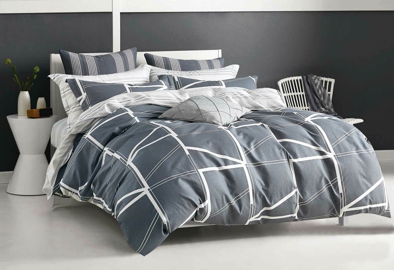 The Hailey quilt cover set / doona cover set brings a navy blue and white colour into your bed with modern geometric patterns. Its 100% pure cotton fabric make comfort for your sleeping and less skin allergy. One quilt cover set includes one quilt cover and two Australian standard pillowcase covers. Available in queen and king size.