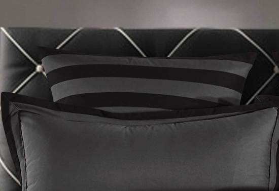 The Iena Grey quilt cover set in hotel striped pattern design adding a more balanced level of black that is more appropriate for a wider range of bedroom furniture. Classic horizontal lines add to an illusion of width, making your bed look wider and as luxurious as the microfibre fabric feels. A classy, sophisticated look.
