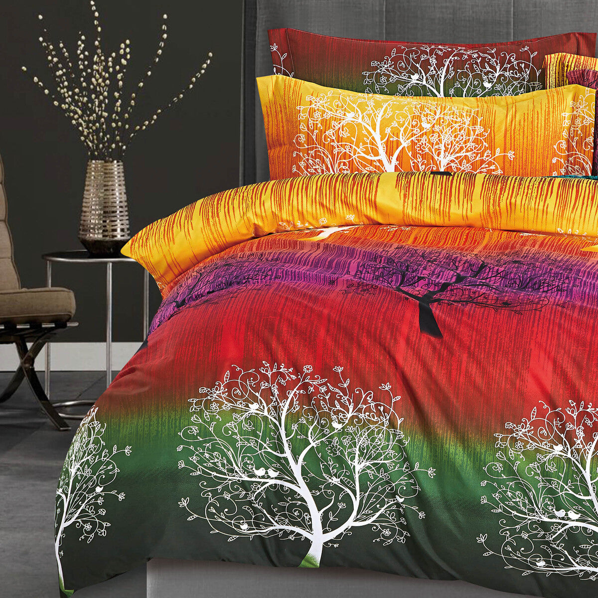 The Cumbria quilt cover design illustrates a fairy forest dream with trees and rich lines texture , made of very durable and thick soft brushed 120GSM durable microfibre. Its unique gradient colors from yellow to burnst orange, from blue to purple, from olive freen to red give your bed a fresh color scheme for spring and summer, and suitable for all seasons and modern bedding. Made of premium brushed microfiber, it is ultra soft, lightweight and durable.